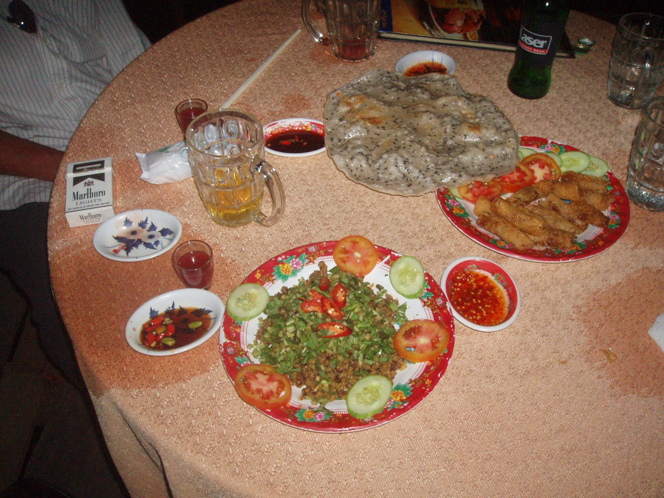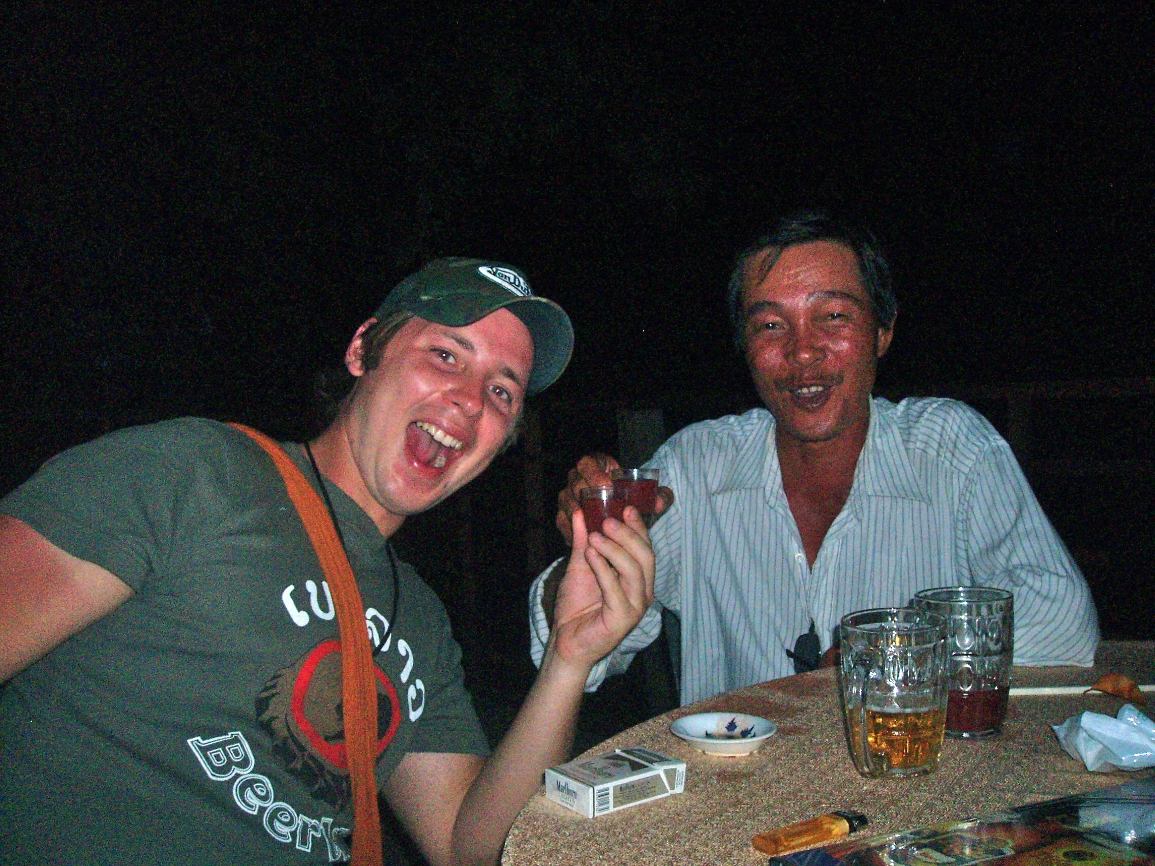 Caption: yup, it got messy! A table full of snake dishes, cigarette packs, rice wine, local beers and the unmistakable chaos of a night that went way off-menu. Frank Hansen